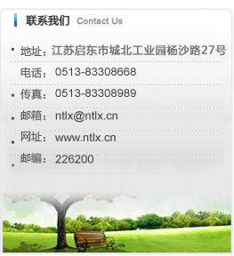 電話:0513-83209668 傳真:0513-83308989 網址:www_ntlx_cn.cisf558.cn E-mail:ntlx@ntlx.cn